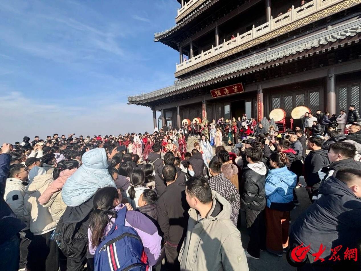 天蒙景区依托东夷文化打造了《丙午纳福・望海聚仙》古风NPC大秀,《沂蒙山小调》以行进式沉浸式实景演艺形式全新呈现;《爱丽丝奇幻之旅》儿童剧上演真人互动,带孩子步入会说话的童话森林,让天蒙山成为一座流动的“年俗剧场”。